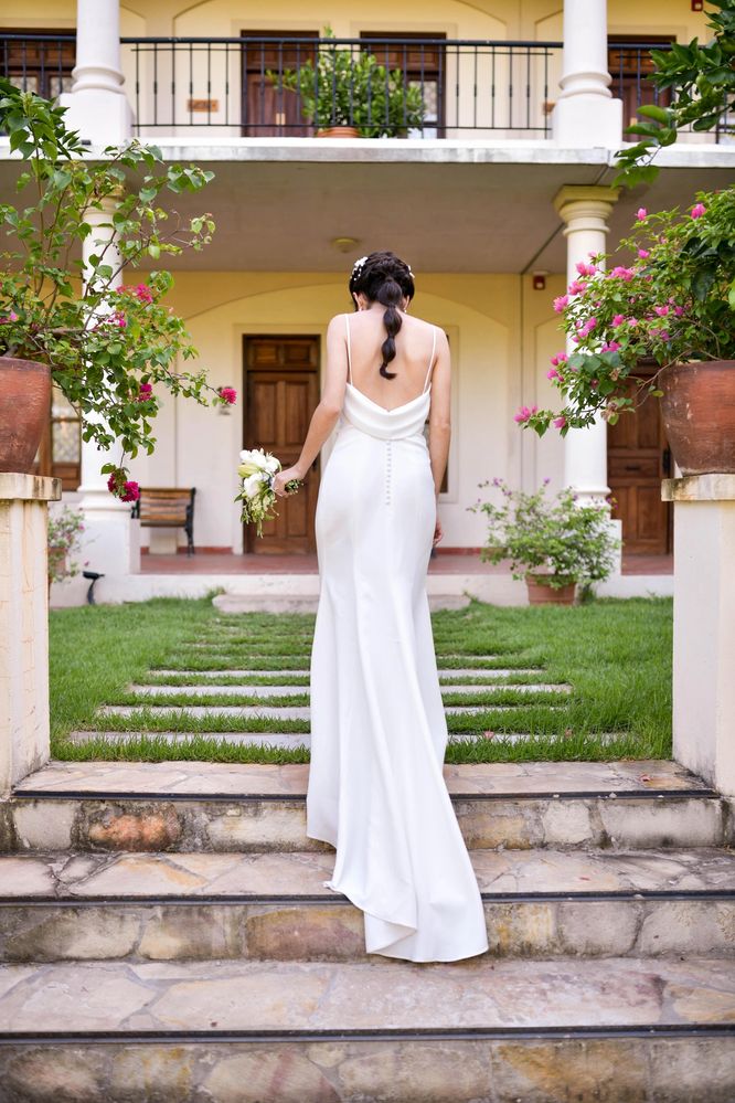 Ofrecemos una amplia variedad de vestidos de novia, accesorios y servicios de customizaciones personalizadas. Estamos aquí para asegurarnos que cada detalle sea perfecto para tu gran día.